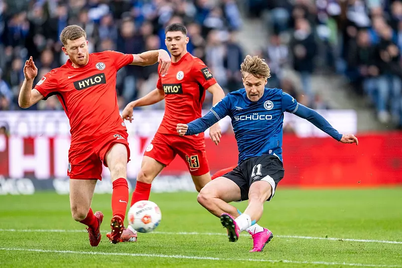 Dabei übernahmen die Elversberger früh die Kontrolle im ersten Pflichtspielduell mit den Bielefeldern, die sich im eigenen Stadion auf Konter verlegten - mit Erfolg: Grodowski sorgte nach schnellen Umschaltspiel für die Führung. Wenig später schoss SVE-Innenverteidiger Le Joncour den Ball nach einer Hereingabe des schnellen Benjamin Boakye bei einem Klärungsversuch ins eigene Tor.