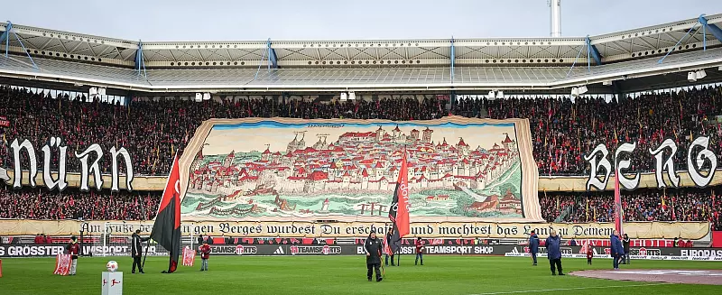 Eine imposante Choreographie im FCN-Fanblock dokumentierte die enorme Bedeutung des Traditions-Duells. Auch auf dem Rasen wurde es bei einer Rudelbildung schnell emotional. Der «Club» hatte meist den Ball, aber es fehlte zunächst an Tempo im Spielvortrag und an der Präzision bei etlichen Flanken.