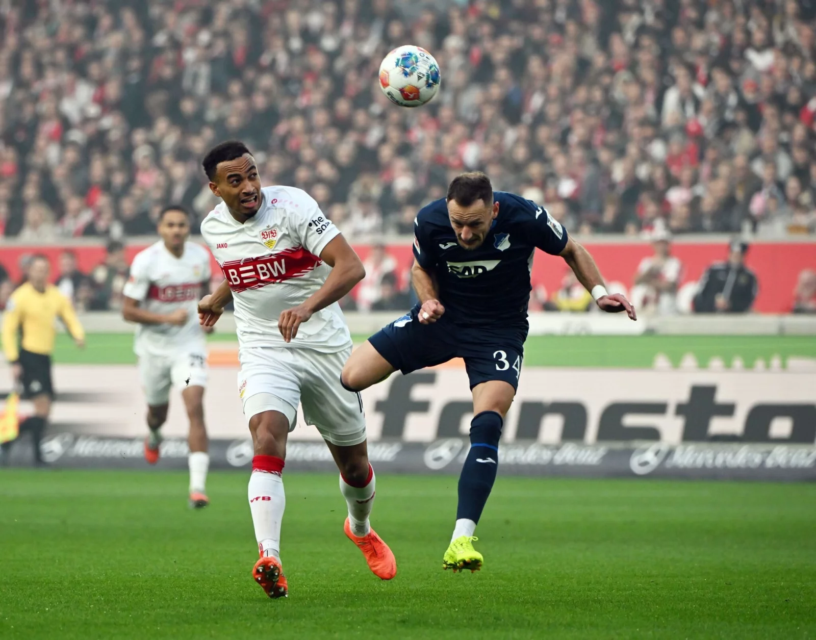 Erst wenige Minuten vor dem Pausenpfiff war Hoffenheims Baumann erstmals richtig gefordert. Eine Flanke von Jamie Leweling verlängerte Nikolas Nartey auf Tiago Tomás, doch Baumann parierte bei der besten Gelegenheit der ersten Hälfte gegen den herangrätschenden Stürmer glänzend.