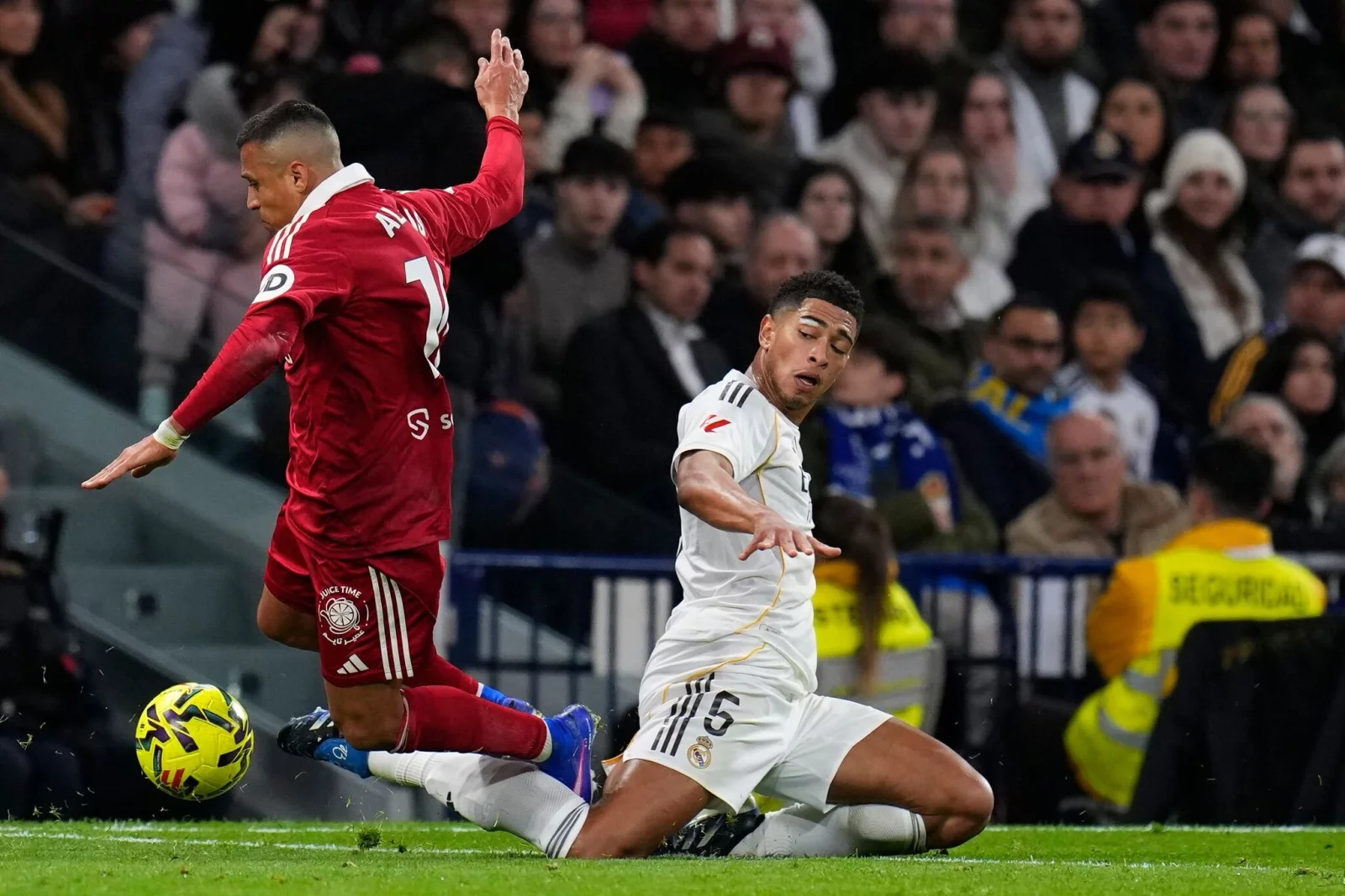 Jude Bellingham brachte die Gastgeber im Bernabéu-Stadion mit einem Kopfball in der 38. Minute in Führung. Auf der Tribüne jubelte sein jüngerer Bruder Jobe von Borussia Dortmund, wo auch Jude Bellingham zuvor spielte. Kylian Mbappé traf nach der Pause per Kopf nur die Latte (57.), allerdings musste Torhüter Thibaut Courtois auch mehrfach den Vorsprung retten. Die Gäste verloren in der 68. Minute Marcao durch eine Gelb-Rote Karte.