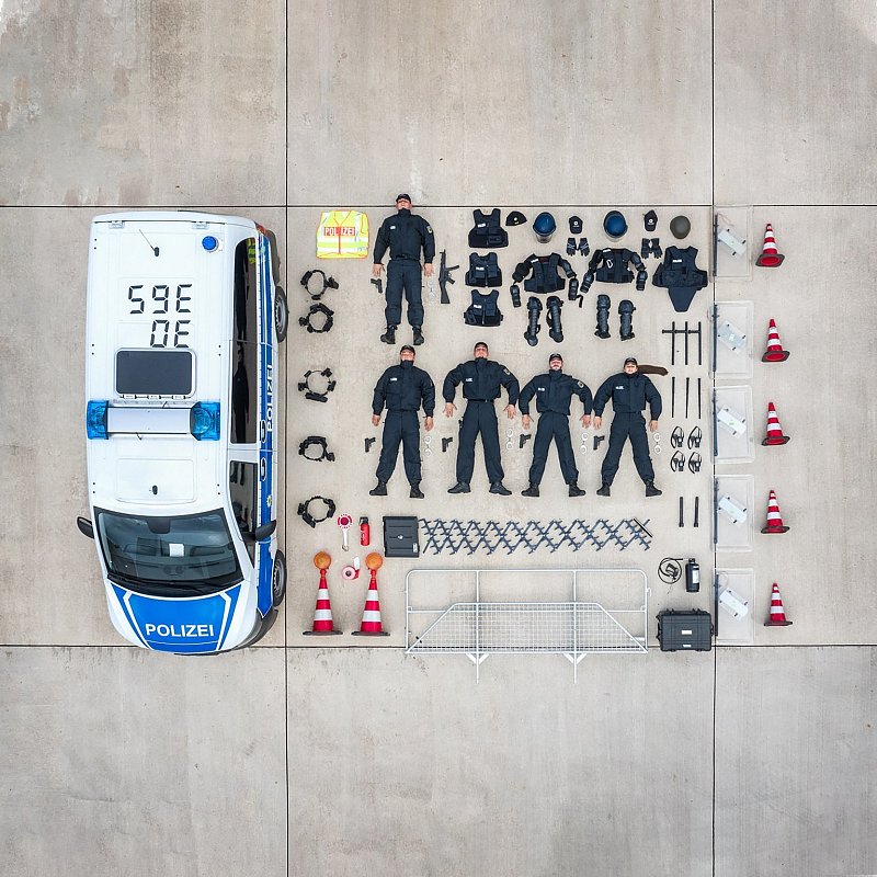 Bundespolizisten aus Duderstadt in Niedersachsen haben sich mit ihren Ausrüstungsgegenständen neben ein Fahrzeug gelegt - und nehmen so an der #TetrisChallenge bei Instagram teil. (© Foto: Sebastian Grafe/Bundespolizei) Bundespolizisten aus Duderstadt in Niedersachsen haben sich mit ihren Ausrüstungsgegenständen neben ein Fahrzeug gelegt - und...