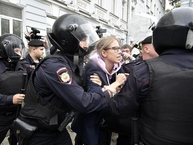 Russische Polizeibeamte verhaften bei einer Kundgebung in Moskau die Anti-Korruptions-Kämpferin Ljubow Sobol. (© Foto: Dmitry Serebryakov/TASS) Russische Polizeibeamte verhaften bei einer Kundgebung in Moskau die Anti-Korruptions-Kämpferin Ljubow Sobol. Foto: Dmitry Serebryakov/TASS