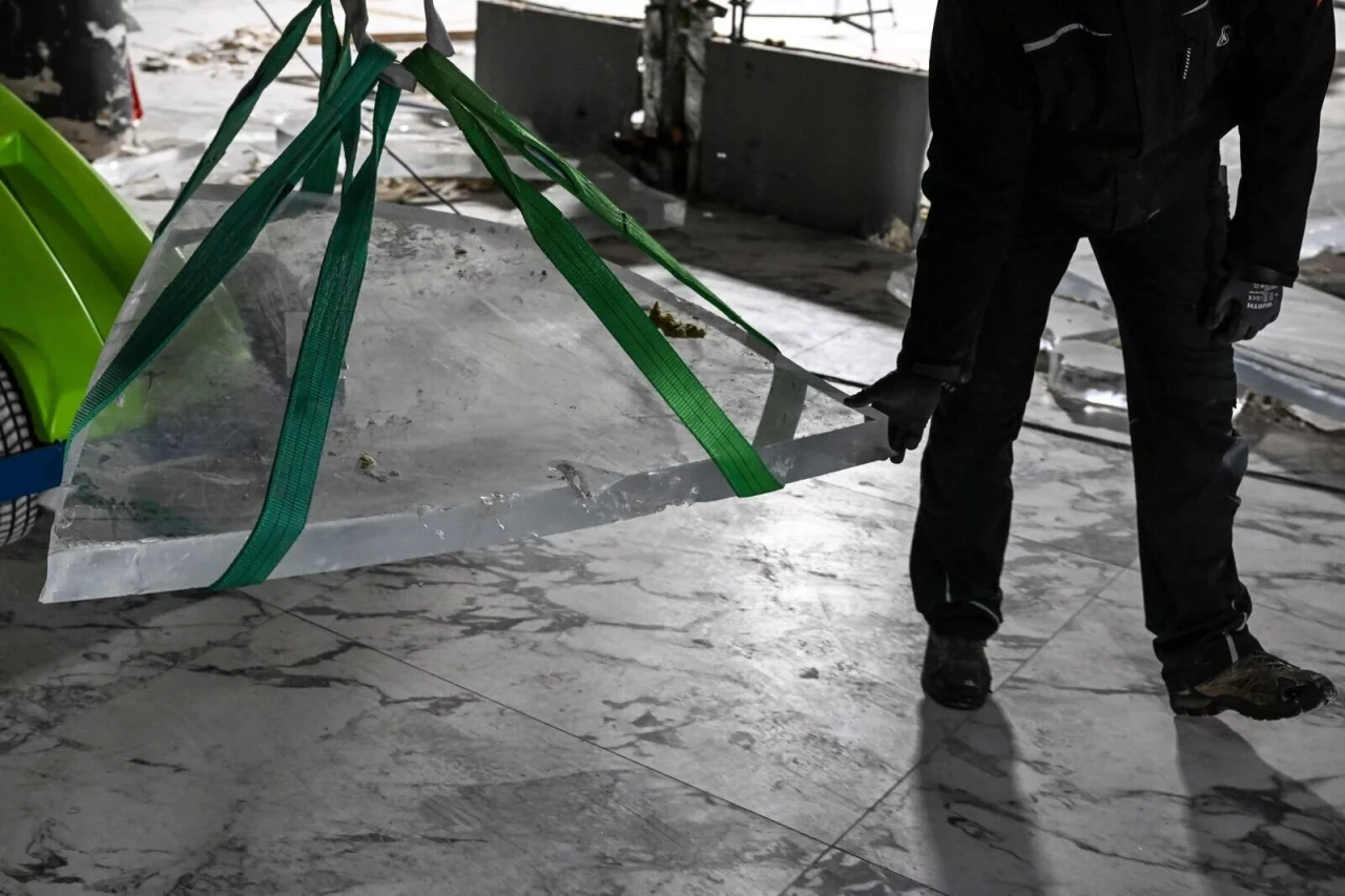 Jetzt, knapp fünf Wochen später, lässt sich nur erahnen, wie es an dem Tag in dem Gebäudeteil des DomAquarées ausgesehen haben muss. Etwa die Hälfte der Acrylglaselemente - die etwas kleineren - seien bereits kartografiert und herausgeräumt worden, sagt Fabian Hellbusch, Sprecher des Gebäudeeigentümers. Die restlichen, großen Acrylteile liegen noch genau dort, wo sie vor knapp fünf Wochen hingefallen sind. «Die großen Elemente werden noch eine ganze Zeit hier sicherlich in der Lobby liegen müssen, um sie auch entsprechend untersuchen zu können», erklärt Hellbusch. «Und dann braucht man Schwergerät, um letztendlich hier einen Abtransport ermöglichen zu können und auch weiter in die Detailsuche gehen zu können.»