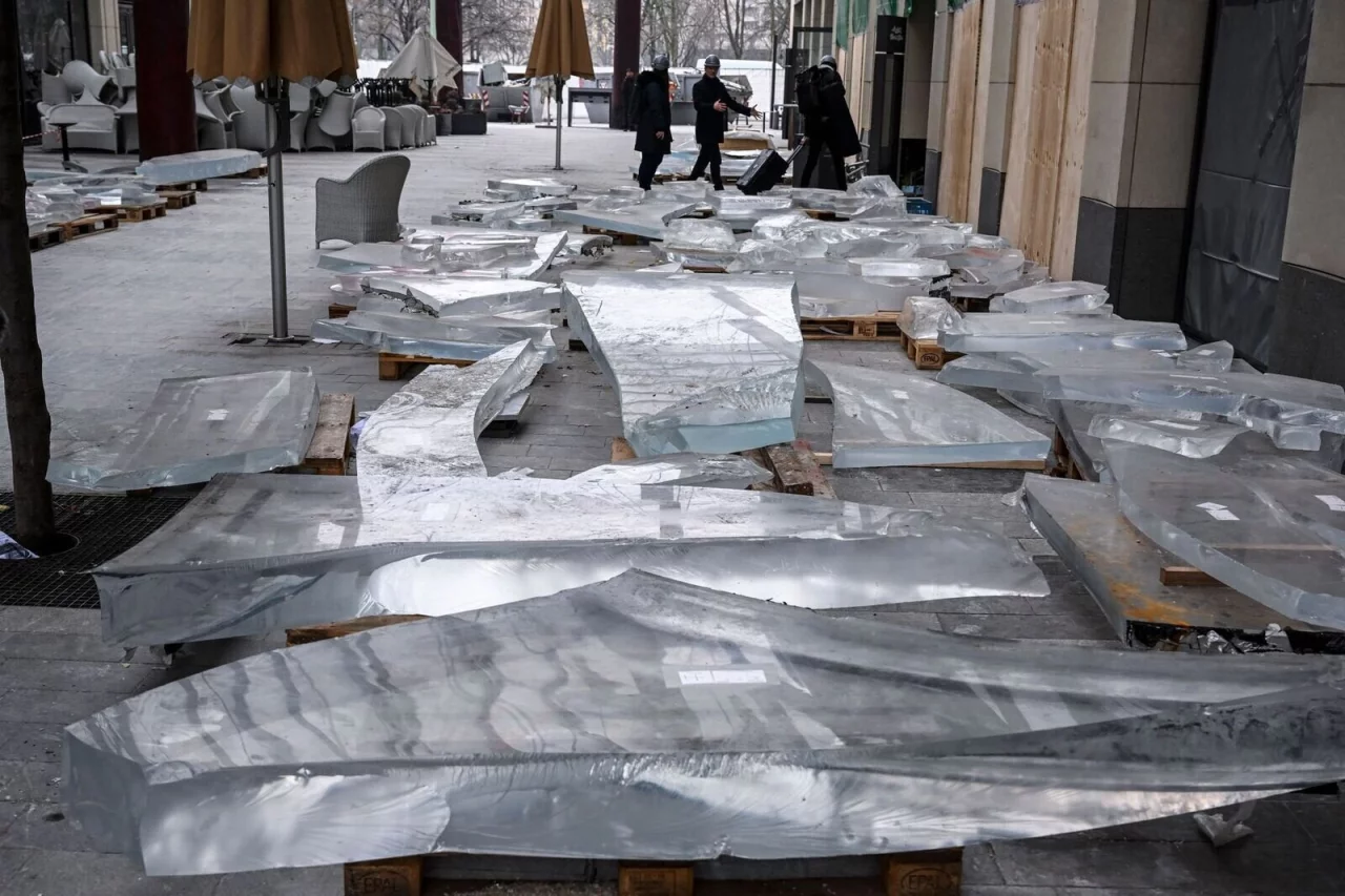 Große Teile, die sich noch in der Lobby befänden, würden derzeit zerschnitten und zur Zwischenlagerung ins Freie transportiert.