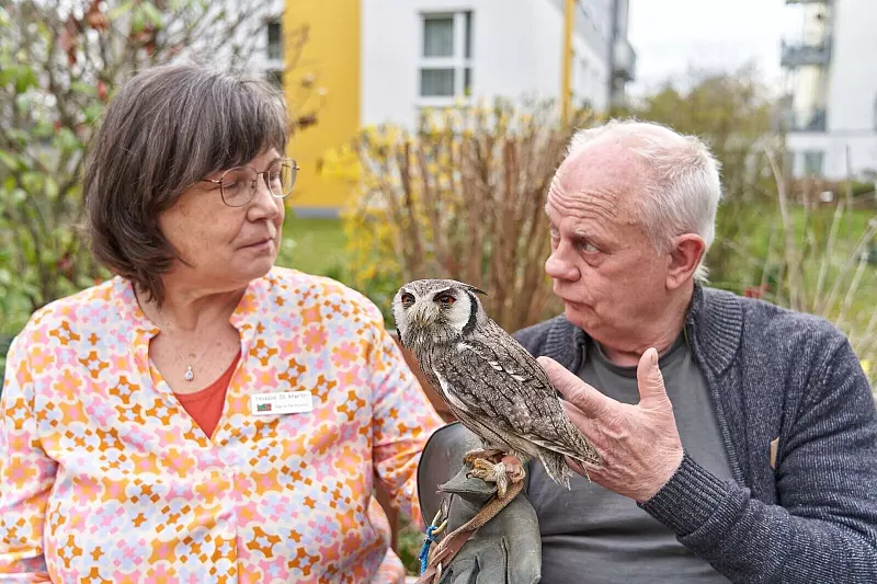 «Eulen bringen ganz viel Ruhe. Eulen machen leise», sagt Falknerin Häfner, die gebürtig aus Eutin in Schleswig-Holstein stammt. Das sei vielleicht etwas, das ein bisschen anders sei als bei ähnlichen Einsätzen mit anderen Therapie-Tieren wie Hunden oder Alpakas. Aus ihren Erfahrungen mit den Eulen erzählt sie: «Die Menschen fangen mehr an zu reden.» Und so ein Besuch bringe viele Erinnerungen zurück. «Man öffnet im Kopf eine Tür.»