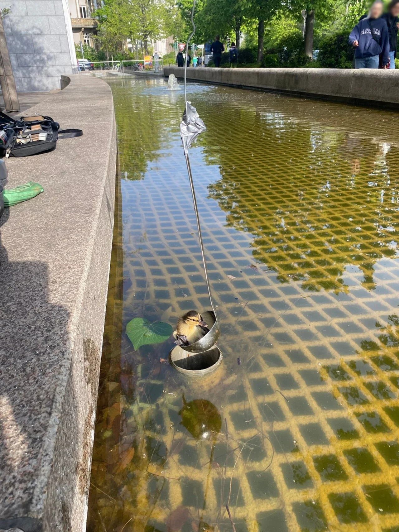 Bei einem tierischen Einsatz hat die Feuerwehr in Frankfurt zwölf Entenküken aus einem Becken für Wasserspiele gerettet. Die Tiere steckten gestern nach den Angaben eines Sprechers der Feuerwehr Frankfurt in einem Überlaufrohr des Beckens fest, dessen Sog sie am Fortschwimmen hinderte. Zunächst habe ein passendes Gerät für die Rettung der Tierkinder gefehlt, doch die Einsatzkräfte hätten schnell improvisiert, teilte die Feuerwehr heute weiter mit.