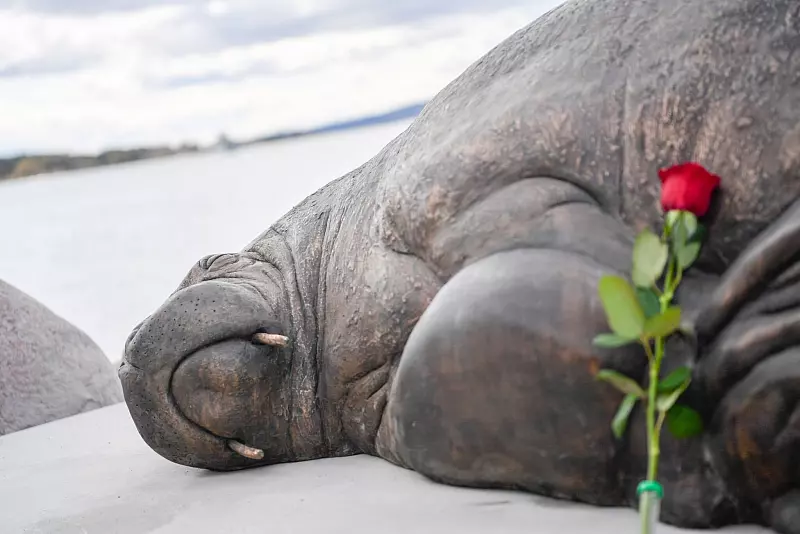 In Oslo erinnert nun ein Denkmal an das Walross Freya, das 2022 in der norwegischen Hauptstadt erst zur Attraktion und dann trotz Protesten eingeschläfert wurde. Das Monument zeigt das knapp 600 Kilogramm schwere Tier zusammengerollt am Ufer des Oslofjords. Eine Spendenkampagne hatte 270.000 Norwegische Kronen (22.800 Euro) für die Statue eingesammelt.