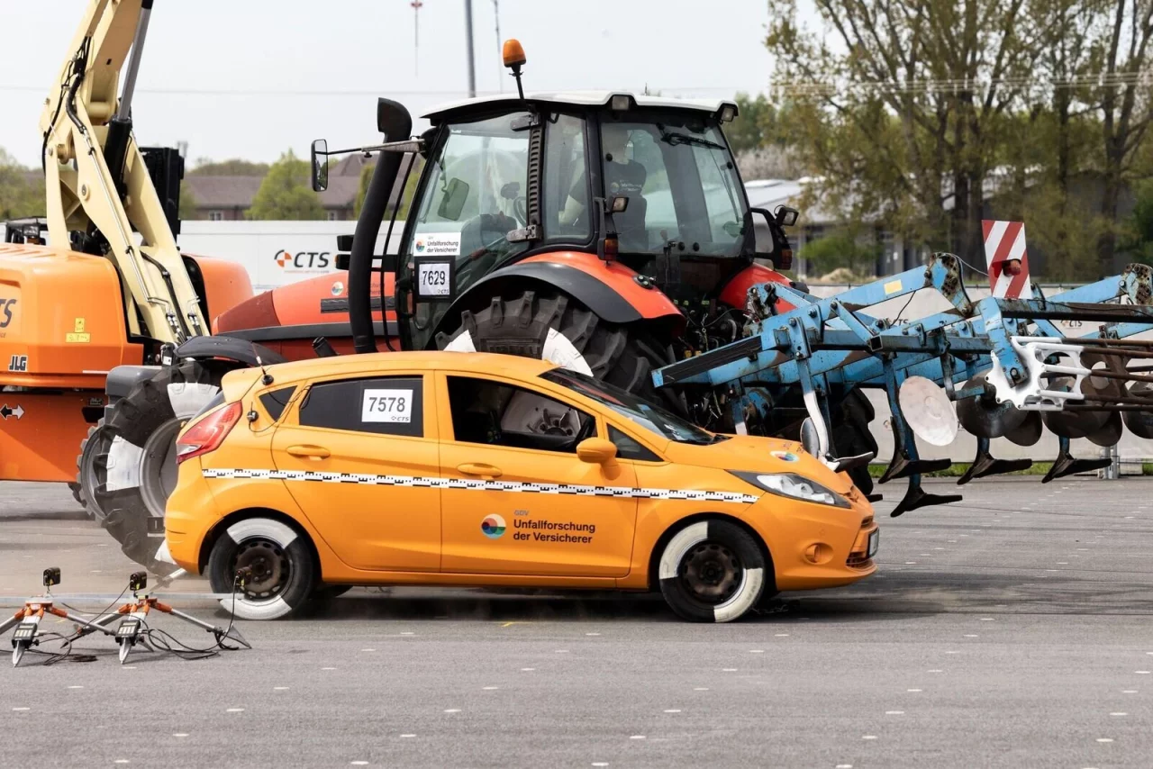 Bei dem Termin in Münster stellten die Unfallforscher in einem Crash-Test eine typische Zusammenprall-Situation beim Abbiegen zwischen einem Traktor und einem Auto mit Tempo 60 nach. Der Kleinwagen fuhr dabei gegen ein landwirtschaftliches Gerät, einen Grubber, am Heck des acht bis neun Tonnen schweren Traktors. Mit ohrenbetäubendem Knall platzte der Airbag, die gesamte A-Säule an der Front des Wagens wurde eingedrückt. Ein Fahrer wäre bei einem tatsächlichen Unfall «hundertprozentig tot» gewesen, sagte Brockmann nach dem Unfall.