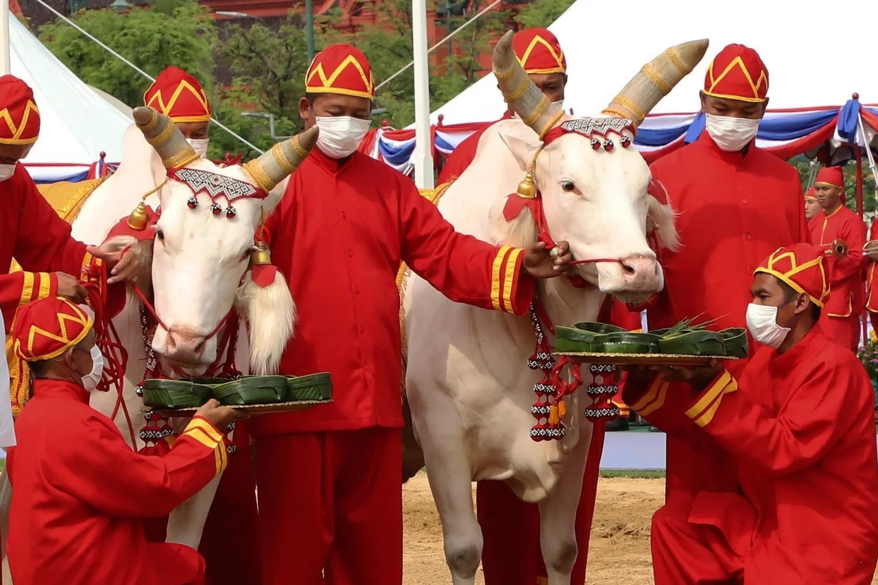 In diesem Jahr entschieden sich die Ochsen für Gras und Schnaps. Dies stehe für reichlich Wasser und Nahrung, hieß es. Zudem wurden ein verbesserter Außenhandel und eine blühende Wirtschaft prophezeit. Traditionell startet der Anbau von Reispflanzen in Thailand im Mai mit dem Beginn der Regenzeit.