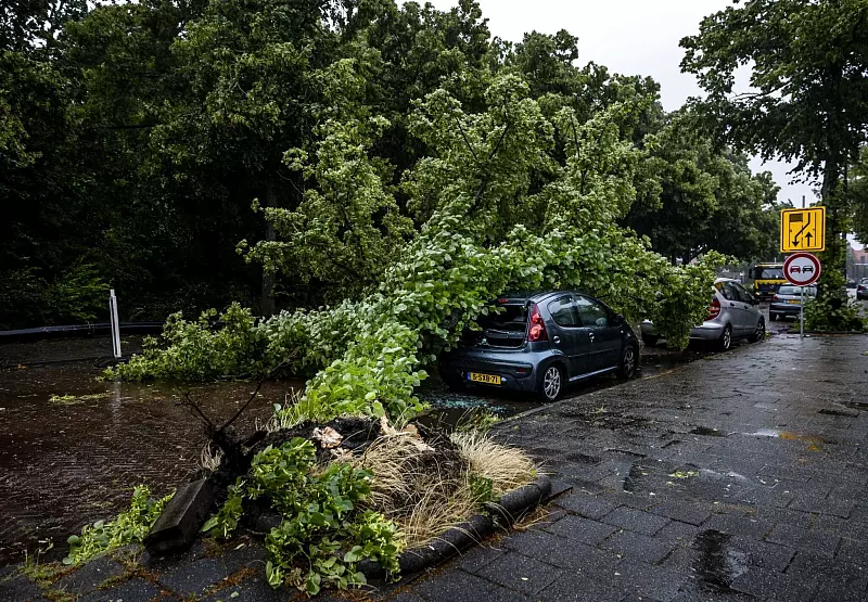 Auch in dem Nachbarland störte das Unwetter den Verkehr. In der Nordhälfte der Niederlande wurde der Bahnverkehr eingestellt, einige Autobahnen waren gesperrt, Schulen und Parks teils geschlossen und in einigen Städten blieben die Busse in den Depots. In Haarlem kam eine 51 Jahre alte Frau ums Leben, als ein Baum auf ihr Auto stürzte.