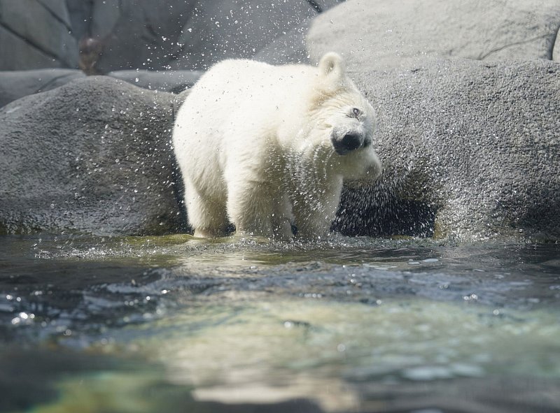 Damit sie gefahrlos spielen, tauchen und toben kann, wurde die Anlage jungtiersicher gemacht. So wurden Kletternetze angebracht, damit das Eisbärenkind auch an tieferen Wasserstellen herausklettern kann. «Für die weitere Entwicklung des Jungtieres ist es optimal, dass es jetzt noch mehr Abwechslung im Alltag hat und durch die neuen Erfahrungen auf der Außenanlage viel dazu lernt», sagte Tierarzt Michael Flügger.