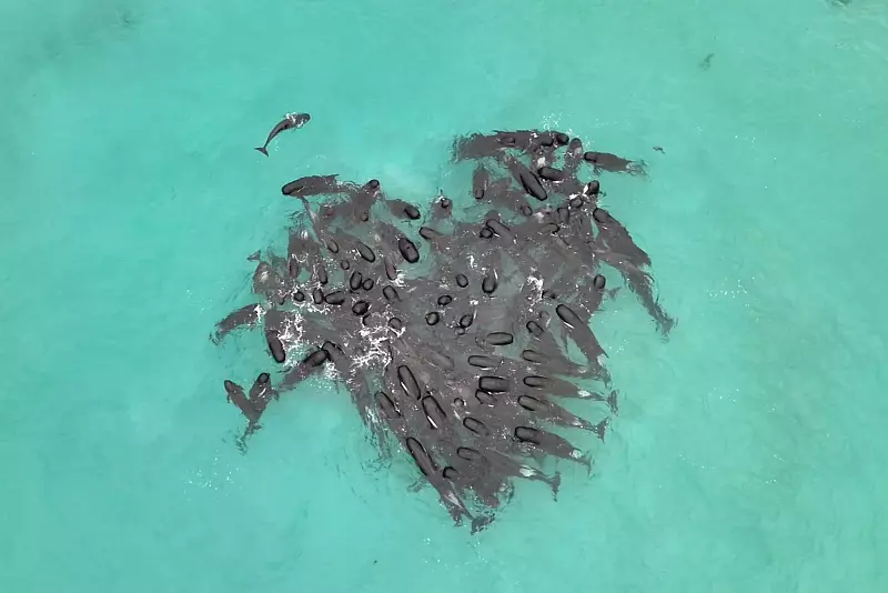 Warum die Tiere sich so sonderbar umeinander geschart hatten, blieb zunächst ein Rätsel. Augenzeugen spekulierten, dass eventuell Killerwale - Orcas - in der Region aufgetaucht sein könnten und die Grindwale sich zur Verteidigung formiert hätten. Grindwale - auch Pilotwale genannt - bauen extrem enge Bindungen untereinander auf. Zu bestimmten Jahreszeiten sind sie in großen Verbänden unterwegs, was das Risiko einer Massenstrandung erhöht.