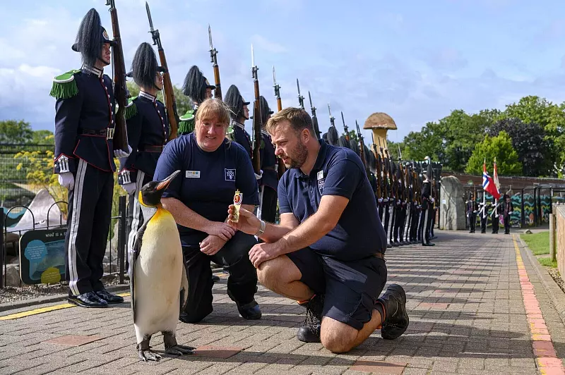 Die skurrile Tradition geht bis 1972 zurück. Damals wurde ein Königspinguin im Zoo der schottischen Hauptstadt von der Truppe adoptiert und nach dem damaligen norwegischen König Olav sowie Major Nils Egelien, der die Aktion organisierte, benannt.