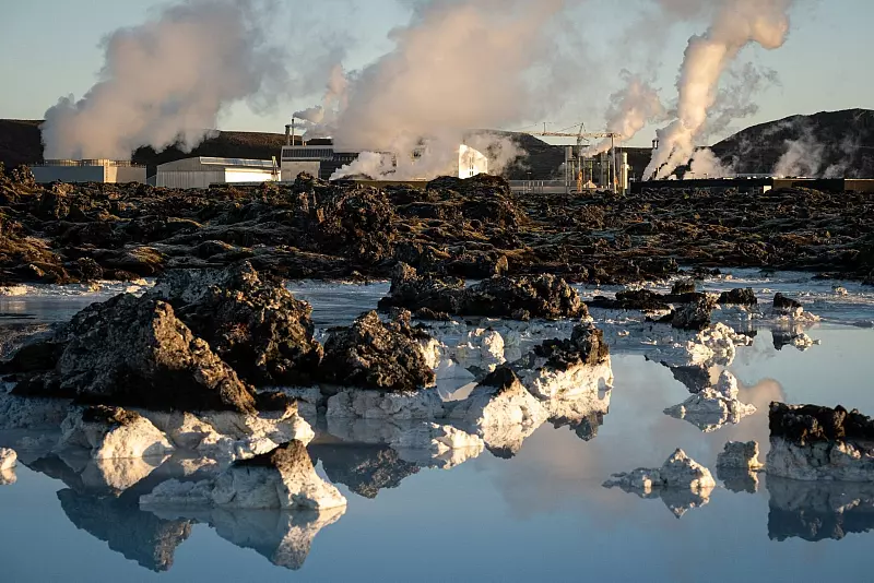 Neben der Blauen Lagune steigt Dampf vom geothermische Kraftwerk Grindavik auf. - © Raul Moreno/SOPA Images via ZUMA Press Wire/dpa