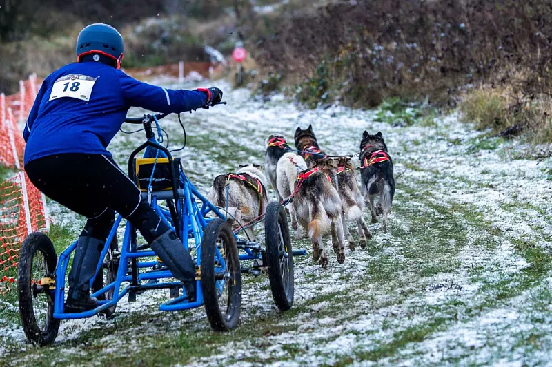 Die Gespannwagen fahren auf Rädern und nicht auf Kufen. Mehr als 140 sogenannte Musher sind laut Heyn in den Motorcross-Park in der kleinen Gemeinde gekommen. Als Musher werden die Lenker eines Hundegespanns bezeichnet. Zudem waren etwa 1000 Hunde angekündigt.