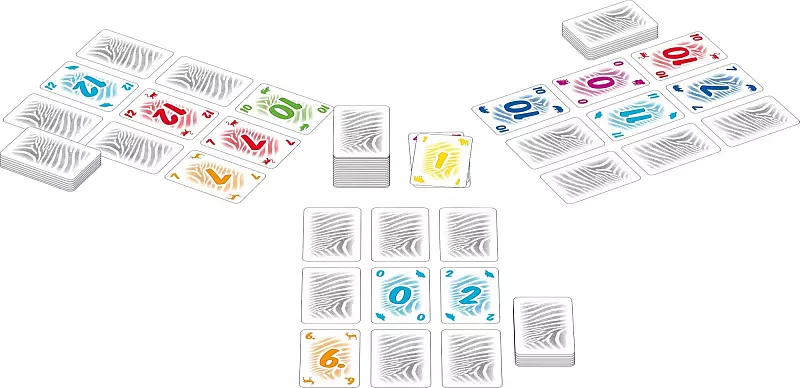 Für Fans beliebter Spiele wie „Skyjo“ oder „Cabo“ gibt es jetzt Nachschub. Auch in „Z3BRA“ liegen drei mal drei Zahlenkarten verdeckt vor jedem aus. Man darf sie ablegen, wenn man drei gleiche Zahlen oder Farben in einer Reihe oder Spalte liegen hat. Neu ist hier, dass man Mitspielern, die eine passende Karte haben, diese wegtauscht, falls man so ein Trio bilden kann. Und auch das Karten-Vertauschen in der eigenen Auslage ist erlaubt. So kommt reichlich Bewegung ins Spiel.