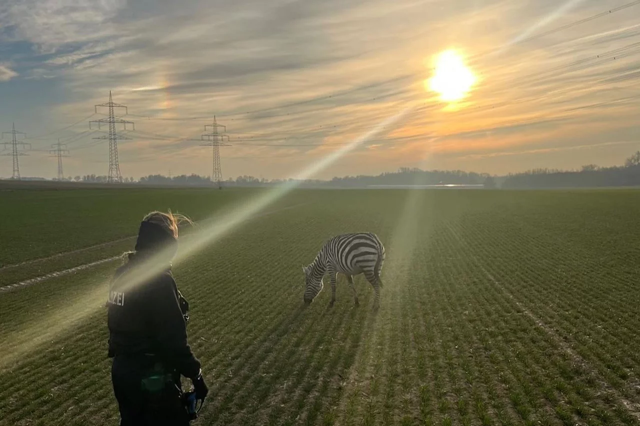 Streifendienst der besonderen Art für die Polizei in Hessen: Die Beamten haben bei einem Einsatz nahe Bad Homburg im Taunus ein entlaufenes Zebra eingefangen. Eine Frau habe das Tier auf den Feldern des Stadtteils Ober-Erlenbach gesehen und den Notruf alarmiert, schrieb die Polizei auf Instagram.