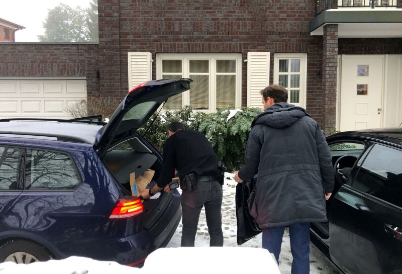 Fast ein Dutzend Ermittler waren am Morgen in zivilen Fahrzeugen vorgefahren und hatten gefüllte Pappkartons und ein wie ein Drucker aussehendes Gerät aus der Villa getragen. Die mehrstündige Aktion war von Medienvertretern beobachtet, fotografiert und gefilmt worden. Auch am Luxus-Hotel Grand Elysée sollen Ermittler unterwegs gewesen sein, wie ein dpa-Fotograf sagte. Sie packten Kartons in ein Auto.