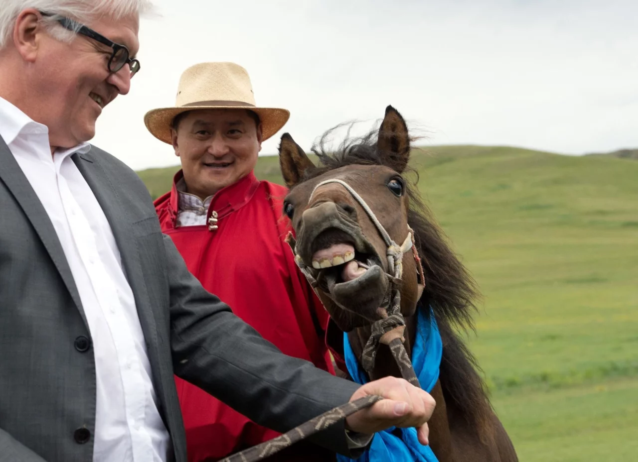 Wer als Staatsgast in die Mongolei reist, bekommt schon mal ein ganzes Pferd geschenkt. So passierte es auch Frank-Walter Steinmeier bei einem Besuch vor rund zehn Jahren - damals noch als Außenminister. Das junge Pferd wurde auf den Namen «Donnernde Hufe» getauft und blieb in dem ostasiatischen Land, als sein neuer Besitzer nach Deutschland abreiste.