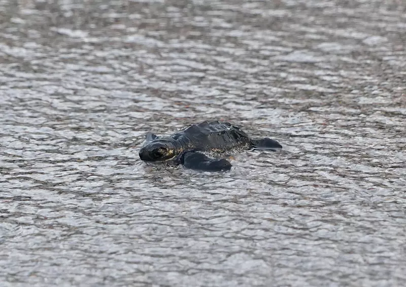 Langsam und noch etwas mühselig krabbeln schwarze Babyschildkröten am Strand von Capo di Feno in Südkorsika Richtung Meer. Schaulustige stehen darum, bestaunen und filmen das Spektakel. Die Geburt der gut 70 kleinen Unechten Karettschildkröten (Caretta caretta) auf der französischen Insel im Herbst war ziemlich ungewöhnlich. Während die Meeresschildkröten sonst im östlichen Mittelmeer an Stränden der Türkei, Griechenlands und Zypern Jahr für Jahr aus den Eiern schlüpfen, werden sie so weit westlich selten gesehen.