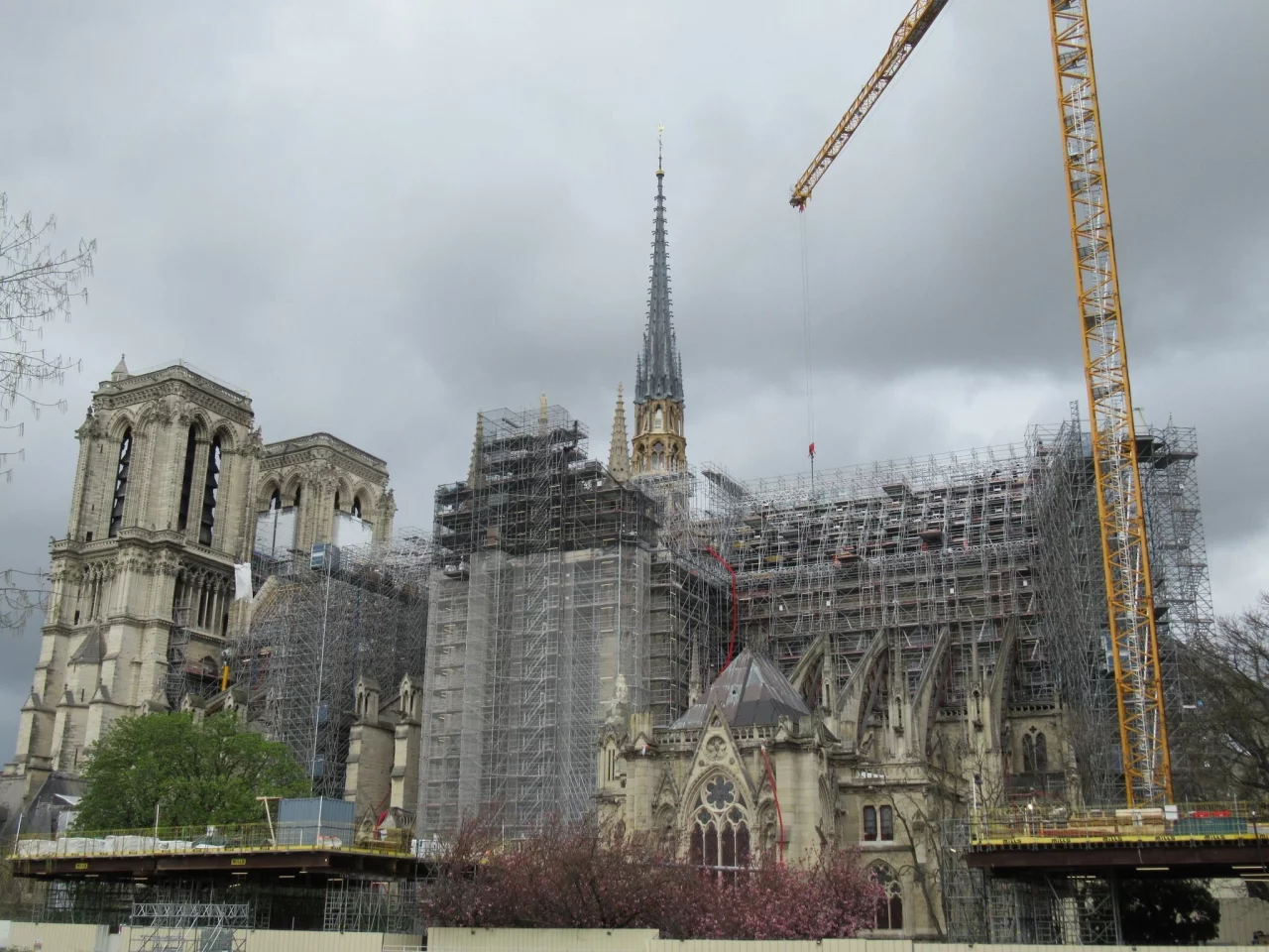 Am 15. April 2019 ertönte um 18.20 Uhr, nach Gottesdienstbeginn, der erste Feueralarm. Die Gläubigen mussten aus dem Gebäude, durften aber wieder zurück, denn es war nichts von einem Feuer zu sehen. Wenige Minuten später, um 18.43 Uhr, ging der Alarm erneut los. Zu spät. Von außen war bereits eine riesige Rauchwolke zu sehen, die vom Dachboden über der Kathedrale aufstieg.