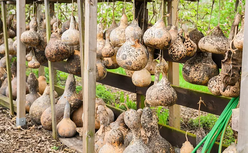 Heute erntet sie auf einer Fläche von rund 2500 Quadratmetern im eigenen Garten jedes Jahr mehrere Hundert Flaschenkürbisse, 30 bis 40 Prozent schaffen es nicht und verschimmeln, der Rest wird an den Spalieren und überall dort, wo Platz ist, getrocknet. Auch müssen sich Hobbygärtner, die sich an Flaschenkürbissen versuchen, der langen Ranken erwehren, die alles zu überwuchern und den Rest des Gartens einzunehmen drohen, wie Lauterbach rät.