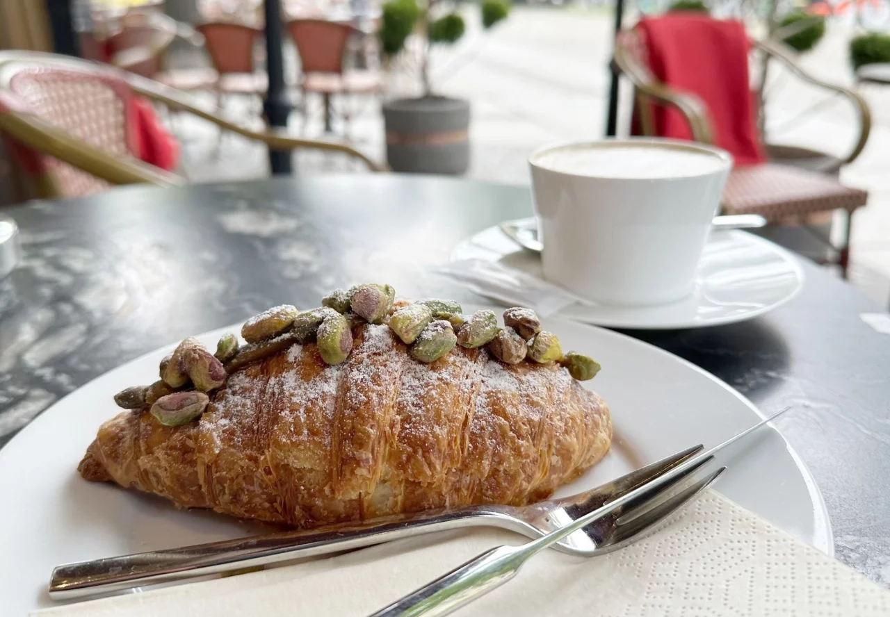 Grüner Hype: Der Trend zur Pistazienliebe hat sich in den letzten Jahren schon angekündigt. Pistazie (italienisch pistacchio) gehört zu den beliebtesten Eissorten. Die recht teure, kräftig-würzig-süßliche Zutat wird nun aber als Creme für allerlei Naschereien verwendet: Es gibt Pistazienrollen, Pistazientiramisu oder eben das gefüllte und dekorierte Pistaziencroissant.