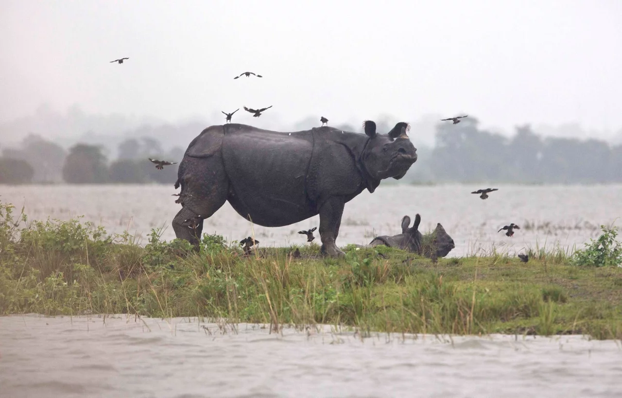 Der heftige Monsunregen in Indien hat mehr als 130 Tieren das Leben gekostet - darunter auch sechs Panzernashörner, deren Art vom Aussterben bedroht ist. Sie lebten im derzeit teils überfluteten Kaziranga-Nationalpark im indischen Bundesstaat Assam, wie lokale Medien - etwa der Fernsehsender NDTV - am Dienstag unter Berufung auf Parkmitarbeiter berichteten. Wegen der Wassermassen mussten sich die Tiere durch die Fluten kämpfen, einige ertranken dabei. Rund 100 hätten gerettet werden können, hieß es. Bei den meisten der getöteten Tiere handelte es sich um Hirsche.