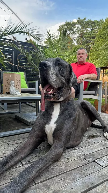 Rund 90 Kilogramm schwer und eine Schulterhöhe von fast einem Meter: Die Deutsche Dogge Ramses aus dem brandenburgischen Zossen ist eine echte Erscheinung. Der Besitzer spekuliert für sein Tier sogar auf den Titel des größten lebenden Hundes der Welt. Ramses hat nach Angaben seines Besitzers eine Schulterhöhe von 98 Zentimetern.
