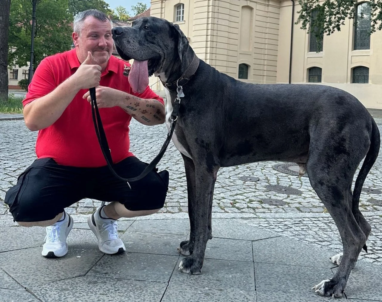 Er wolle den Guinness-Rekord für den größten lebenden Hund «nach Deutschland holen», so der Hundebesitzer Patrick Hein. Falls ihm das gelinge, wolle er sich «das Tier natürlich tätowieren». Mindestens die Tatze, die Rekordurkunde und die Steuermarke wolle er sich dann auf der Haut verewigen lassen. «Das Versprechen habe ich gegeben.»