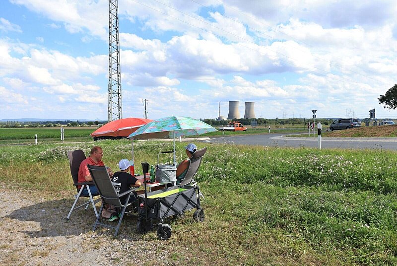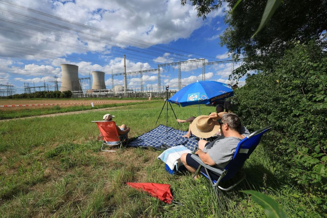 Am Abend sollen die beiden Türme der Anlage kontrolliert in sich zusammenfallen. Bereits Stunden vor dem Spektakel haben sich hunderte Schaulustige auf den Wiesen und Feldern rund um das Kraftwerk niedergelassen. «Wenn man schöne Plätze haben will, muss man halt bald kommen», sagt Olaf Müller, der mit seinem Bruder und dessen Freundin nur wenige hundert Meter vom Kraftwerk entfernt im Schatten sitzt. Picknickdecke, Sonnenschirm, Campingsstühle und eine Kühlbox hat das Trio dabei. Die drei hoffen auf eindrucksvolle Bilder für einen Slow-Motion-Film, den sie in der Familie zeigen wollen.