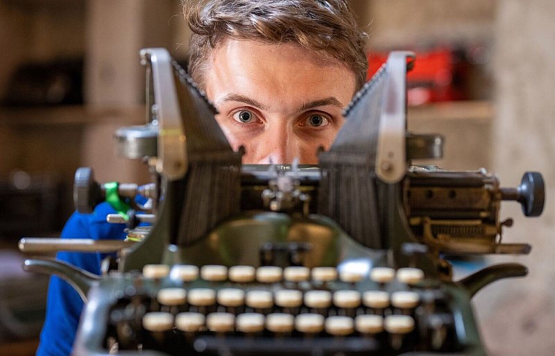 «Wir haben deutlich über 100 Stück», sagt Kramps Cousin Paul Hallmanns. Die beiden haben ihre Faszination für die alten Schreibgeräte als Jugendliche entdeckt. «Es ist unheimlich spannend, anhand der Schreibmaschinen durch die Epochen zu gehen», sagt der 24-Jährige. «Das ist eine irre Technik, die da drinsteckt», sagt der Student zwischen Modellen aus Gusseisen, die mit schwarzem Klavierlack überzogen sind. «Und sie machen diese tollen Geräusche.»