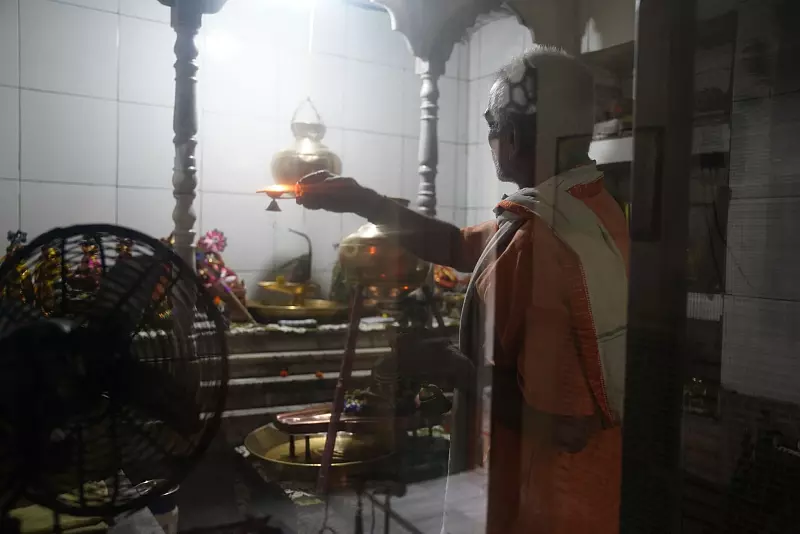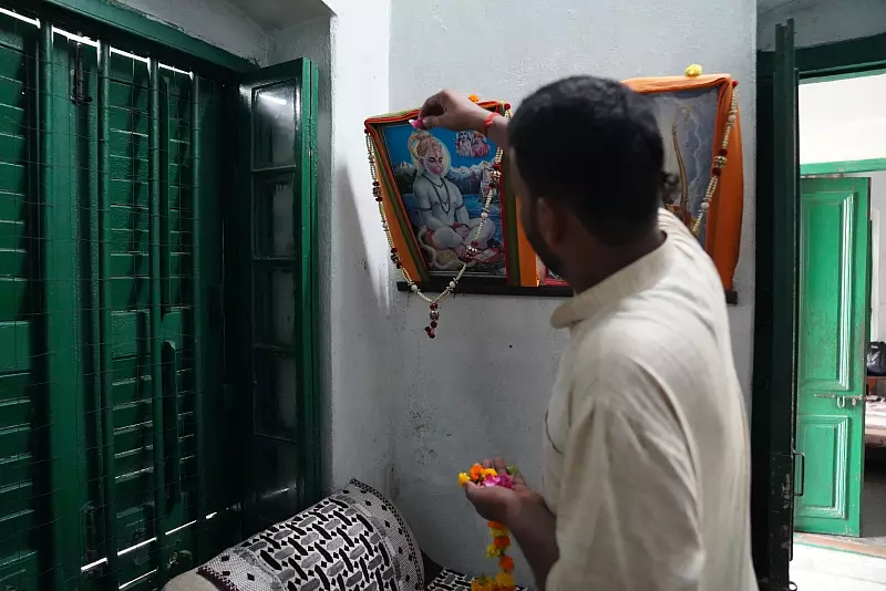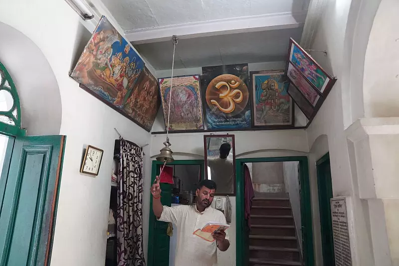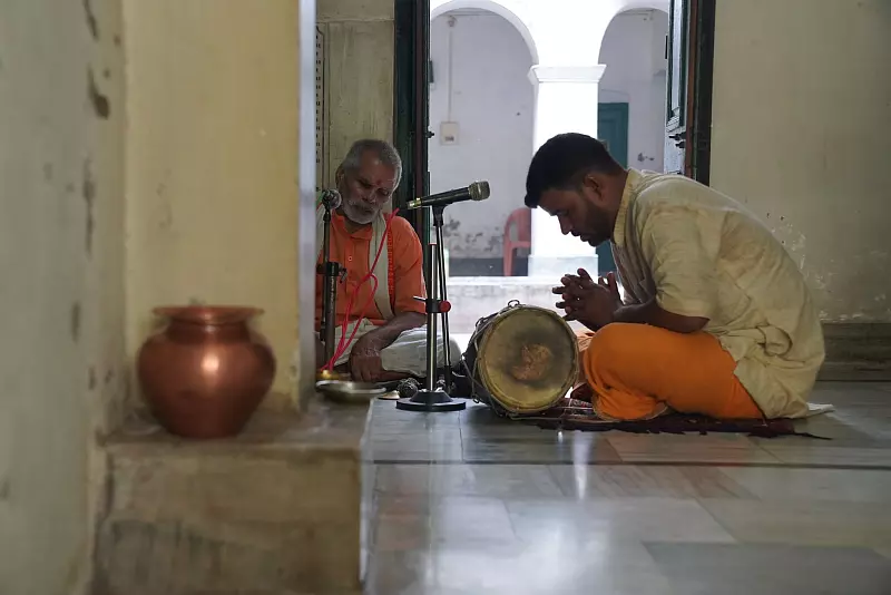 Zu jeder Tages- und Nachtzeit hört man im Mukti Bhawan fromme Gesänge aus einem Lautsprecher im Innenhof. Manchmal trommeln und singen auch Priester Dubey und seine drei Kollegen. Sie schwenken Kerzen vor einem Altar, baden kleine Figuren hinduistischer Götter in Ganges-Wasser und ziehen ihnen frische Kleider an.