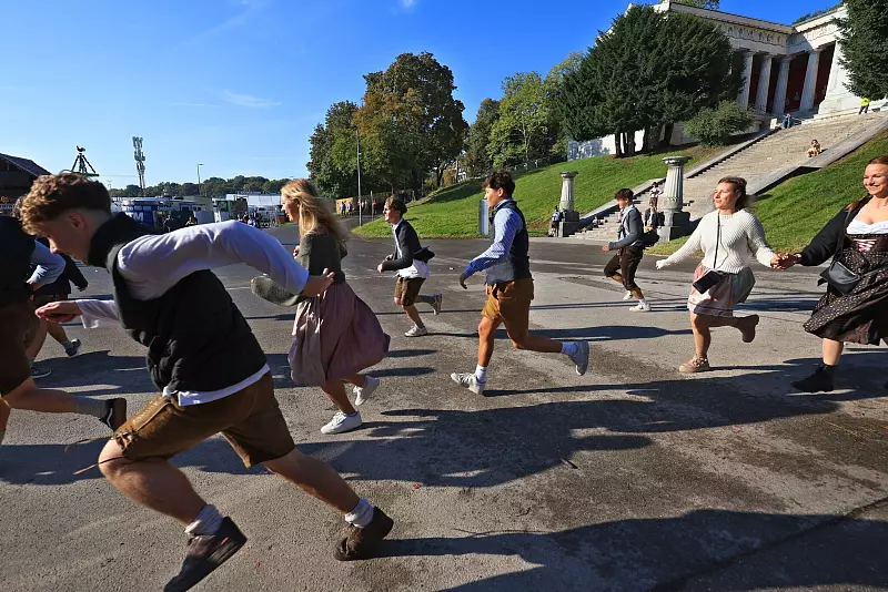 Schon am frühen Morgen hatten die ersten Wiesn-Fans - zumeist in Dirndl und Lederhose - an den Eingängen auf die Öffnung des Festgeländes gewartet. Als sich die Tore gegen 9.00 Uhr öffneten, stürmten Hunderte im Laufschritt Richtung Festzelte, um einen guten Platz zu ergattern. Der Andrang war enorm - sicher auch wegen des sonnigen Wetters.