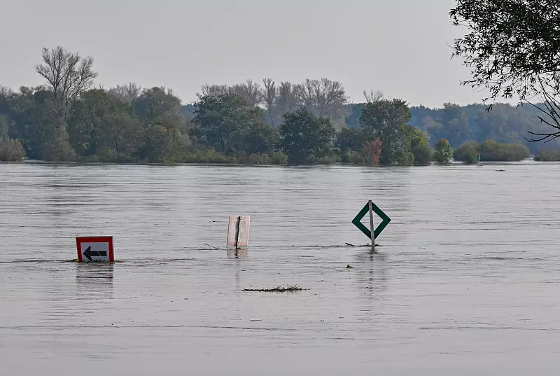 Hintergrund ist der steigende Pegelstand, der in Ratzdorf erwartet wurde. Dort ist die Oder stark angeschwollen - Schilder für die Schifffahrt ragen kaum noch aus dem Fluss heraus.