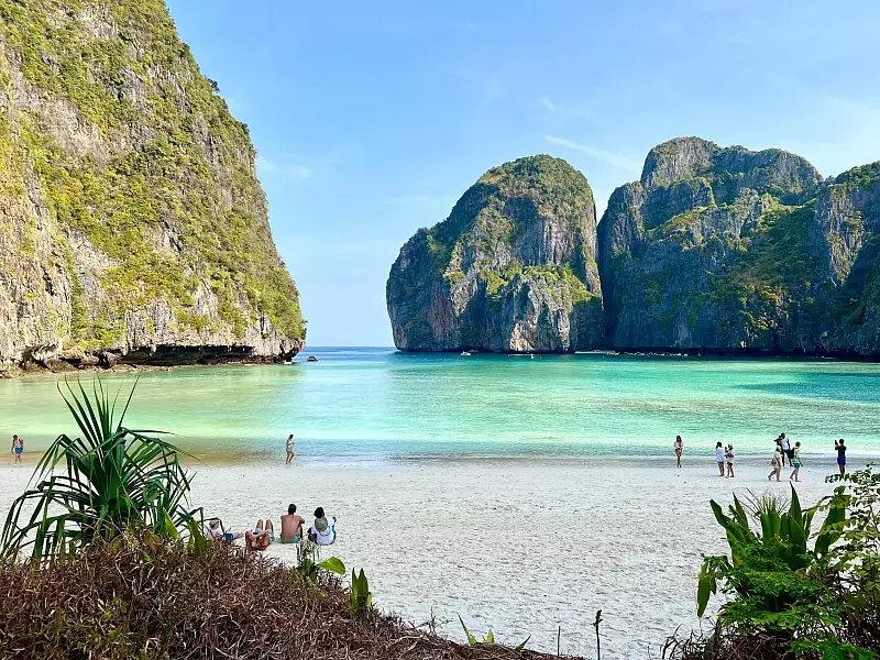 Der weiße Tropenstrand, der von markanten Felsen umrahmt wird, war durch Danny Boyles Hippie-Blockbuster «The Beach» aus dem Jahr 2000 bekannt geworden. In dem Film mit Leonardo DiCaprio in der Hauptrolle ist der Strand noch völlig unberührt.
