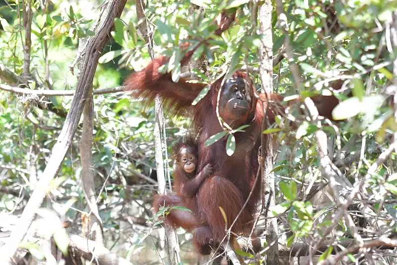 Hier brachte sie drei Jahre nach ihrer Heimkehr ihre erste Tochter Dea zur Welt und erwies sich sofort als tolle Orang-Mama. Dea konnte 2019 sogar im Nationalpark Bukit Baka Bukit Raya ausgewildert werden. Die zweite Tochter Dinda wurde 2016 geboren, im Oktober 2022 folgte Sohn Dai. Etwa zur gleichen Zeit gebar auch ihre enge Freundin Melata ein Baby – die kleine Dumel.