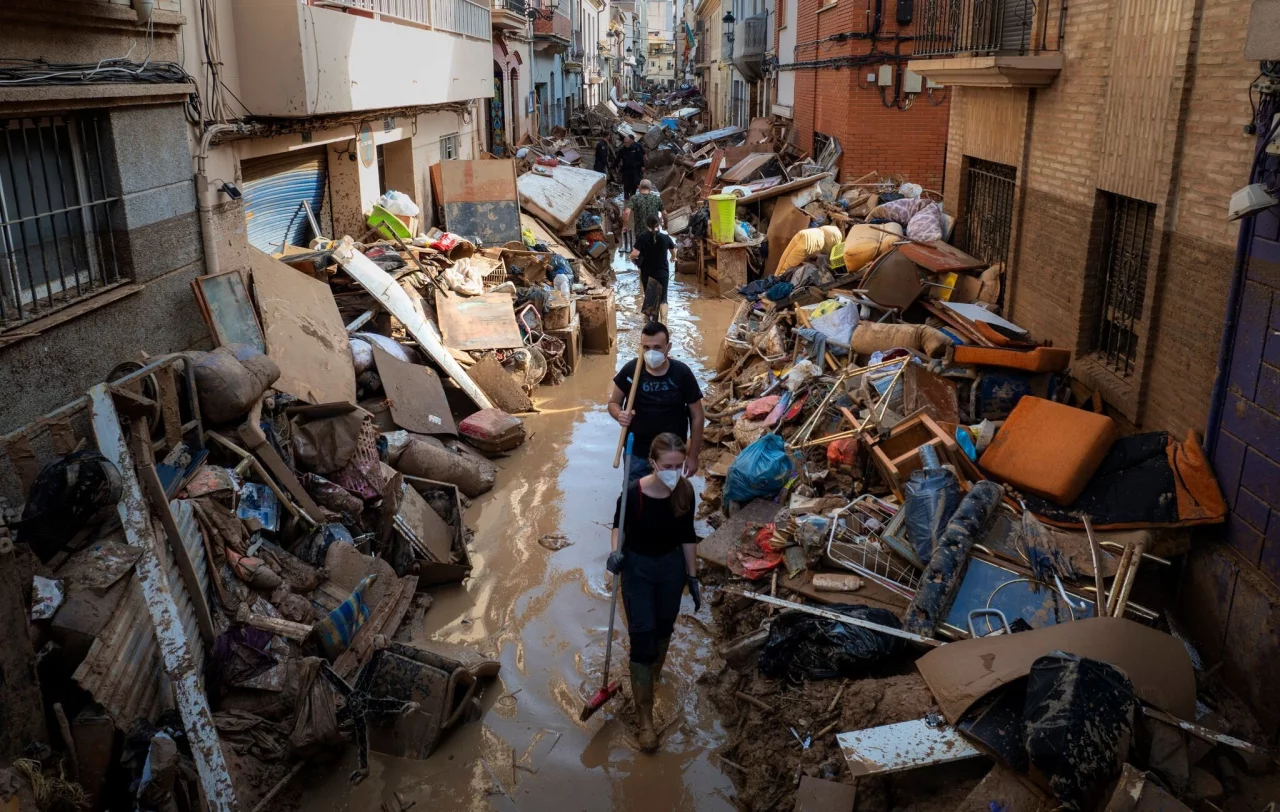 Eine Woche nach dem verheerenden «Jahrhundert-Unwetter» im Osten Spaniens mit mehr als 200 Todesopfern bietet das Katastrophengebiet weiterhin ein trostloses Bild. Trotz der inzwischen auf Hochtouren laufenden Bergungs- und Aufräumarbeiten sind viele Straßen der über 60 schwer betroffenen Gemeinden in der Region Valencia immer noch mit Schlamm bedeckt. Überall lagen Müll, kaputte Möbel und aufgestapelte Autos, wie die Kameras des TV-Senders RTVE und anderer Medien zeigten.