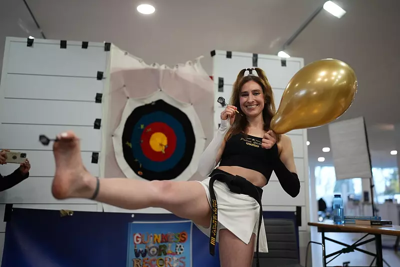 Der Taekwondosportlerin Palina Glebova gelangen zwei Weltrekorde: Die 27-Jährige schaffte es, mit Dartpfeilen, die sie mit dem Fuß warf, zehn Luftballons in einer Minute zum Platzen zu bringen. Außerdem gelang es ihr, mit High-Heel-Kicks über Kopfhöhe 22 Luftballons in einer Minute zum Platzen zu bringen. An einem Absatz der High-Heels war eine Nadel befestigt, damit die Luftballons platzen. Auf ihre Rekorde hatte sich die Taekwondosportlerin Monate lang vorbereitet. «Das Schwierige ist, den richtigen Zeitpunkt abzupassen, an dem ich den Dartpfeil loslassen muss», sagte sie.