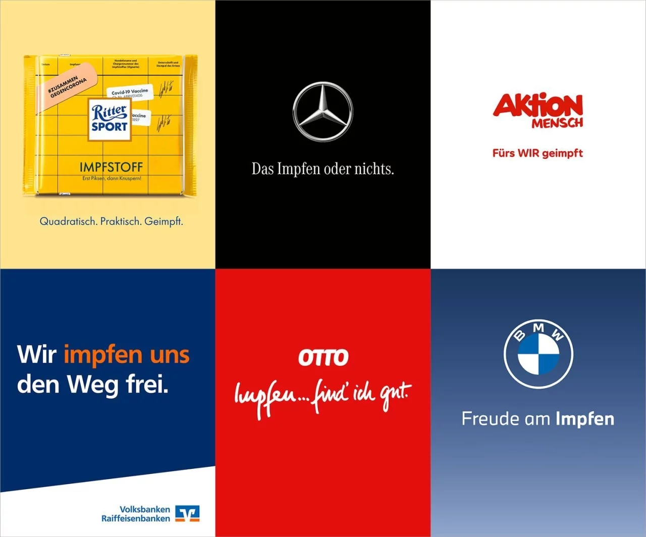 Mit dabei ist fast alles, was in der deutschen Wirtschaft Rang und Namen hat: Unter anderem BMW, Mercedes-Benz, Edeka, Lidl, Henkel, die Sparkasse und die Volksbanken, aber auch Burger King und McDonald's. Um die Menschen für das Impfen zu gewinnen, setzen die Unternehmen vielfach ihre bekannten Markenslogans ein - in abgewandelter, zugespitzter Form. So wirbt Lidl mit dem Slogan: «Impfen lohnt sich», Edeka mit «Wir lieben Impfen» und Persil mit «Impfen: Da weiß man, was man hat».