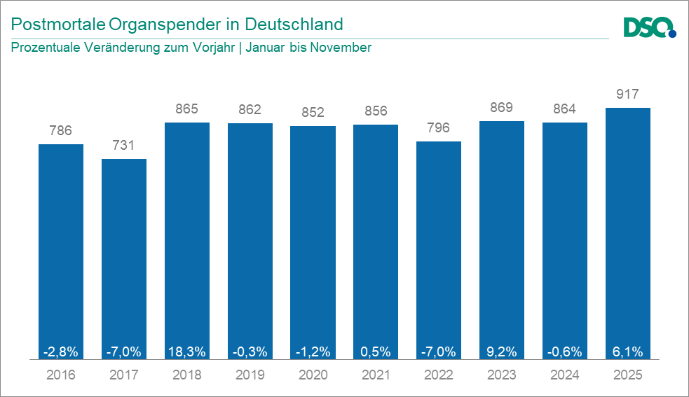 Die Zahl der Spender war nach langem Abwärtstrend 2018 wieder spürbar gestiegen - auf 955. In diesem Jahr gab es aber zunächst wieder einen Rückgang. Von Januar bis August waren es 614 Spender - nach 650 im selben Zeitraum des Vorjahres. Unabhängig von der Debatte gelten inzwischen neue Regeln, um die Organspende-Bedingungen in Kliniken zu verbessern - mit mehr Geld und mehr Freiraum für Transplantationsbeauftragte.