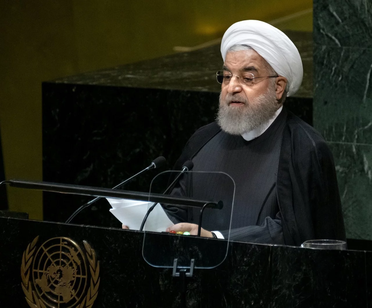 Ruhani lud am Mittwoch in seiner Rede vor der UN-Vollversammlung alle Anrainerstaaten der strategisch wichtigen Straße von Hormus am Persischen Golf zur gemeinsamen Lösung von Konflikten. Verhandlungen mit US-Präsident Donald Trump lehnte er dagegen ab, solange der seine Sanktionen gegen den Iran aufrecht erhält. «Man verhandelt nicht mit einem Feind, der versucht, Iran mit den Waffen des Elends, des Drucks und der Sanktionen in die Knie zu zwingen.»