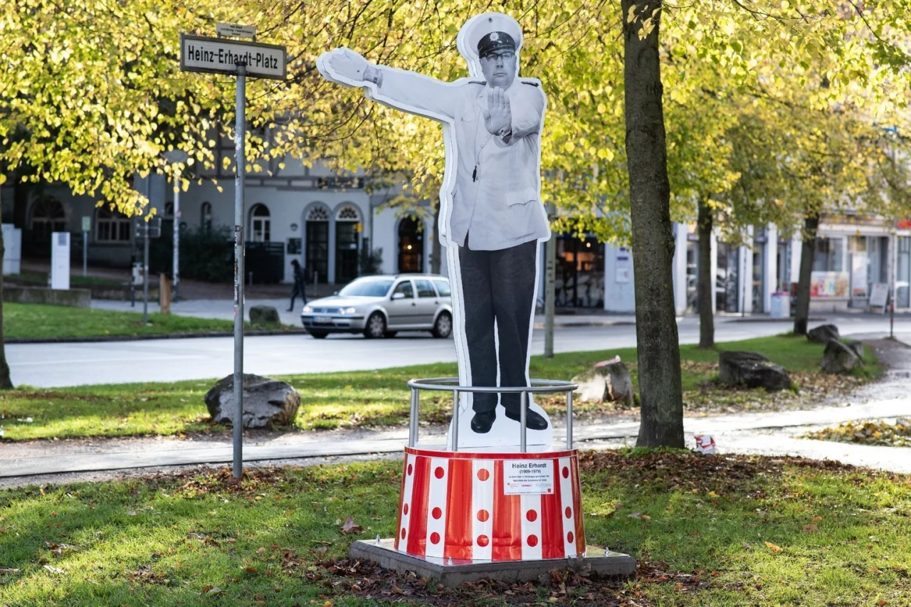 Der Diebstahl des Denkmals im September hatte viel Wirbel ausgelöst. Die Figur des beliebten Komikers war drei Wochen lang verschwunden, bevor eine Spaziergängerin die beschädigte Stele auf dem Stadtwall wiederfand. Inzwischen sei das Denkmal repariert und verstärkt worden, damit es besser vor Diebstählen geschützt sei, sagte der Stadtsprecher. Das Standbild war 2003 aufgestellt worden. Es zeigt, wie Erhardt (1909-1979) in der Rolle des Polizisten Eberhard Dobermann im Film «Natürlich die Autofahrer» den Verkehr regelt.