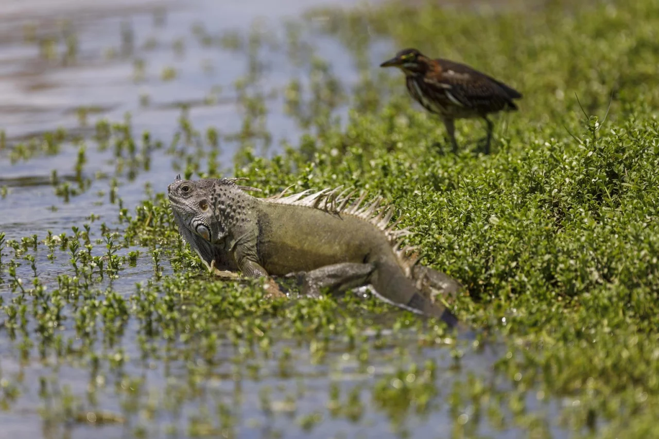 Grüne Leguane, die mitunter mehr als zwei Meter lang werden können, stammen ursprünglich aus dem südlicheren Amerika. In Florida gelten sie als eingeschleppte Art, die dort keine natürlichen Feinde hat. In manchen Park- und Gartenanlagen werden die Echsen US-Medien zufolge bereits als Plage angesehen.