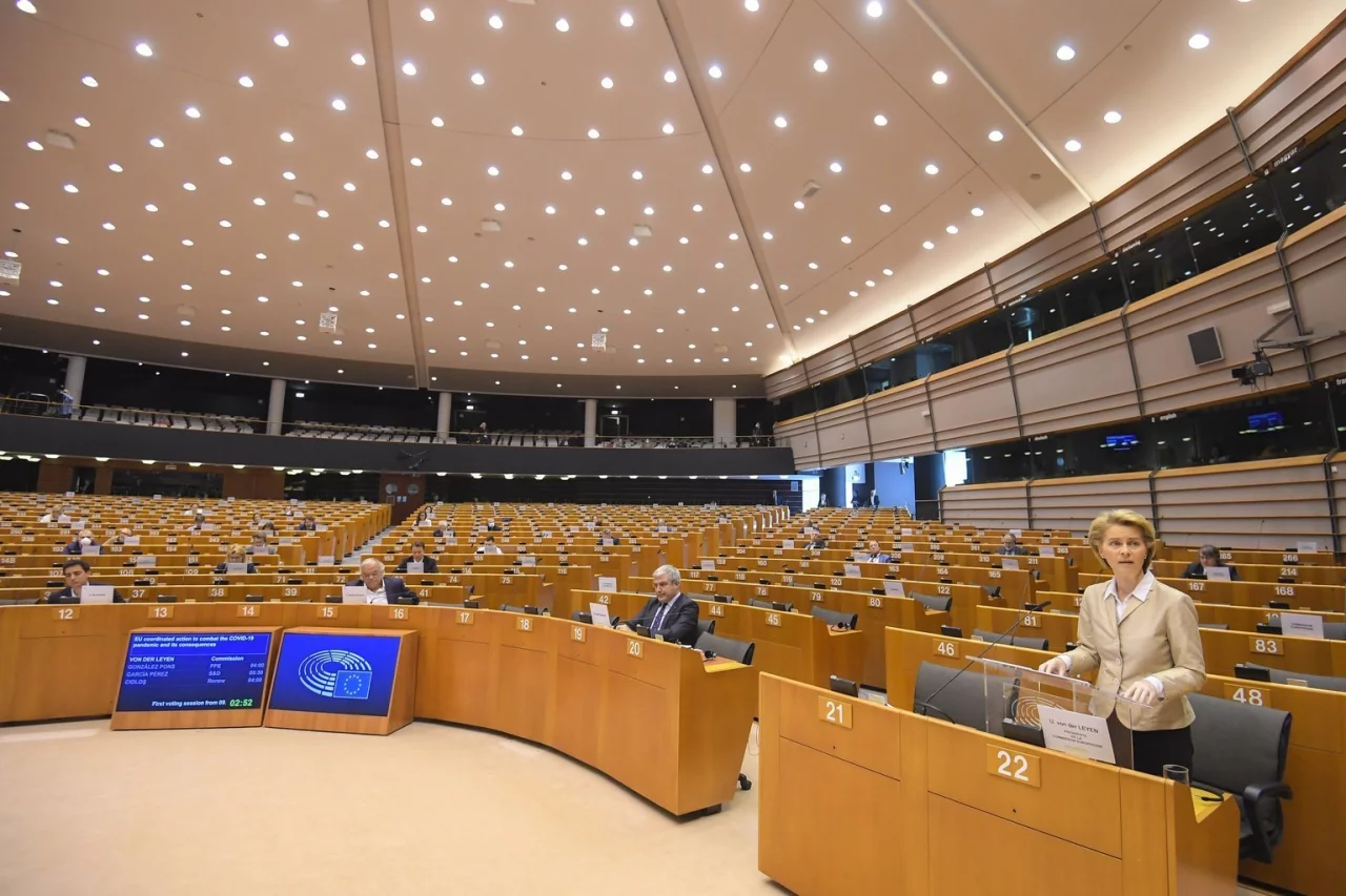 Die Sondersitzung mit von der Leyen und Ratschef Charles Michel fand wegen der Corona-Krise erneut in einer Art Notformat statt: Ein Großteil der Abgeordneten verfolgte die Debatte nicht im Plenum in Brüssel, sondern online und konnte sich per Email an Abstimmungen beteiligen. Wichtigster Tagesordnungspunkt war eine Resolution mit der Forderung nach einer gemeinsamen Antwort der EU auf die Krise.