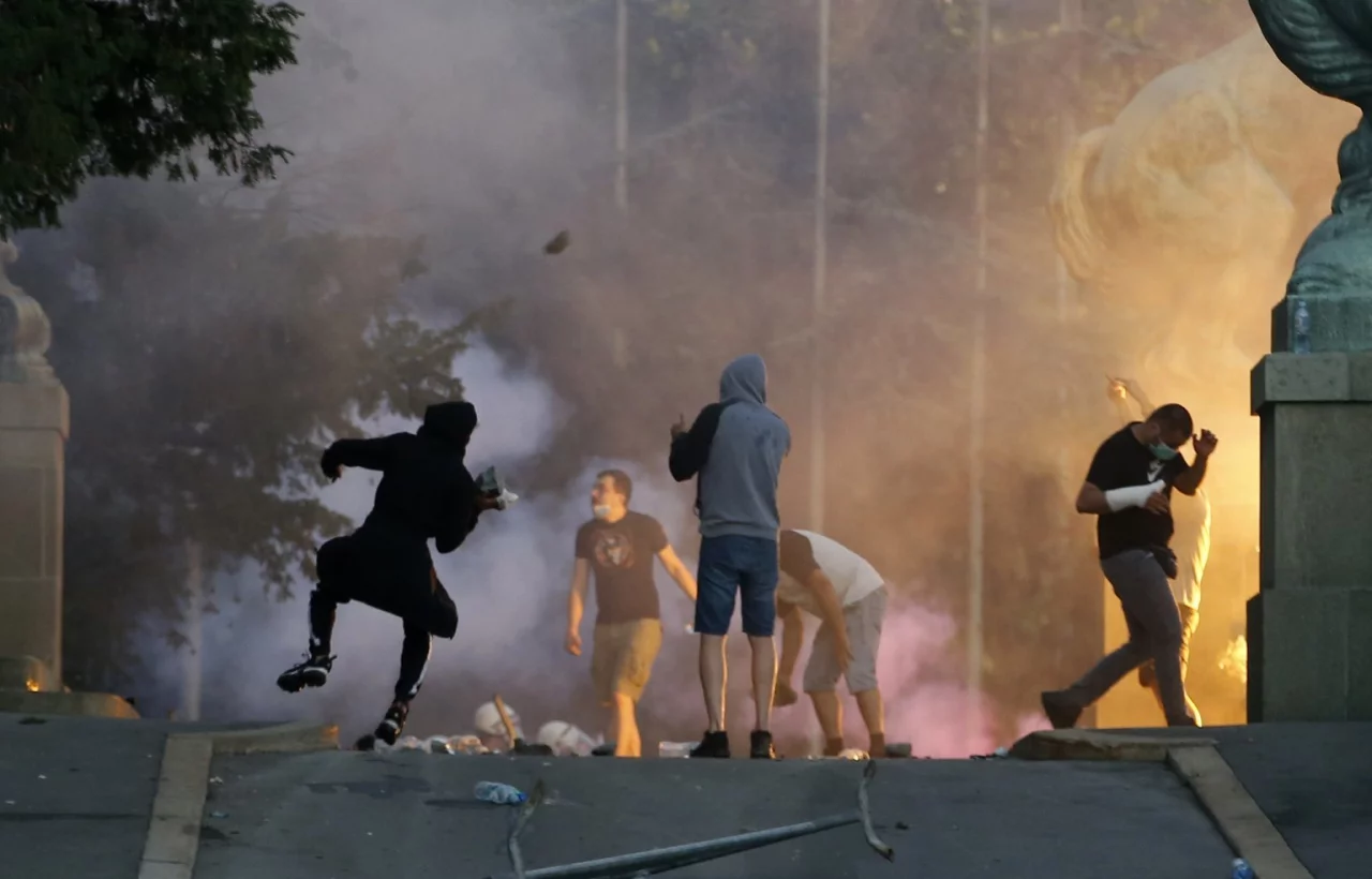 Die Militanten lösten sich bei den Protesten in Serbien von den friedlichen Demonstranten ab und suchten den Konflikt mit der Polizei, wie die Zeitung «Danas» erichtete. Die Radikalen, zumeist aus dem Milieu der Fußball-Hooligans stammend, warfen Steine und Feuerwerkskörper auf die Polizisten. Diese trieben die Menge mit Tränengas und Schlagstöcken auseinander. Dabei schlugen die Beamten auch auf friedliche Demonstranten ein. Manche von ihnen lagen bereits am Boden, wie Augenzeugen berichteten.