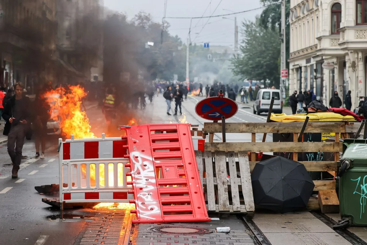 Bei der größten radikal linken Demonstration in Leipzig seit Jahren war es am Samstag zu Ausschreitungen gekommen. Während des Aufzugs wurden mehrere Bankgebäude mit Steinen beworfen. Gegen die Fassade der Polizeidirektion Leipzig flogen Flaschen und Böller. Auf einem Banner wurde der Chef der Extremismus-Einheit der sächsischen Polizei bedroht.