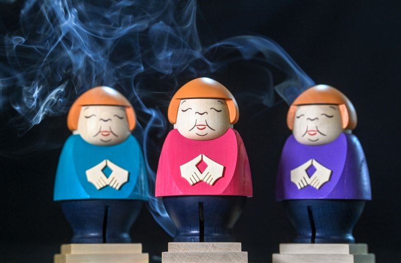 Räucherfrau: Die Hände zur Raute geformt, der Blazer rosa, türkis oder violett. Wer schnell bestellte, hat zum Fest die qualmende Angela-Merkel-Räucherfigur (69 Euro) aus dem Erzgebirge zu Hause. Die 14 Zentimeter hohe Drechselarbeit aus Esche und Weißbuche fand reißenden Absatz. Innerhalb weniger Tage ausverkauft, hieß es von der Seiffener Volkskunst eG in Sachsen. Nächster Liefertermin: Februar.