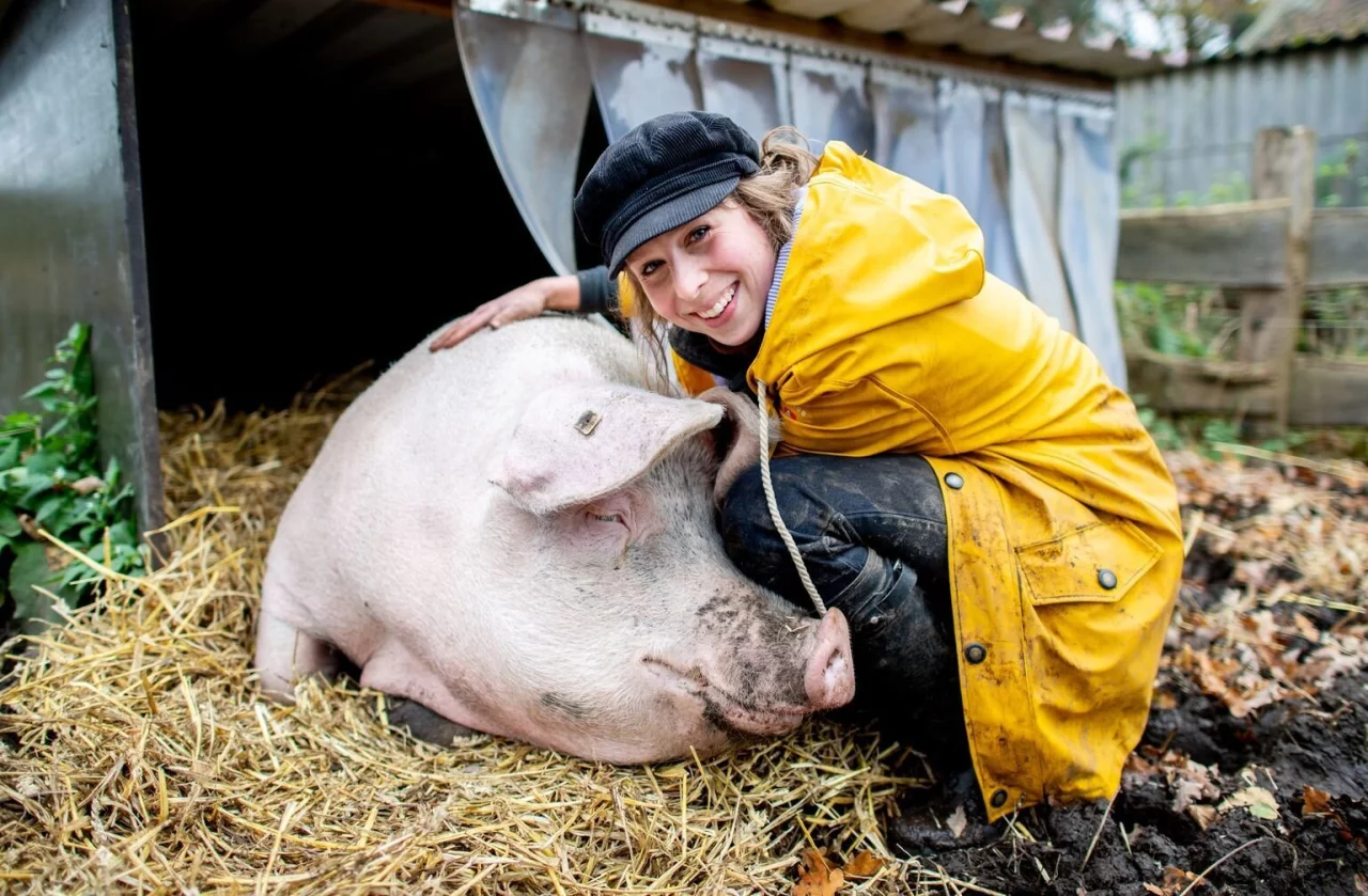 Seit knapp drei Jahren lebt Rosalie nun sauglücklich auf dem Hof von Landwirtin Maren Osterbuhr mitten in Ostfriesland. «Rosalie soll hier alt werden dürfen - und zwar gesund», sagt die junge Landwirtin, während sie eine Banane schält. «Rosalie, magst du ein bisschen Banane?» Langsam trottet die 400 Kilo schwere Sau auf die Landwirtin im knallgelben Anorak zu, nimmt das Obst grunzend an und lässt sich dabei sichtlich zufrieden am Bauch kraulen. Wäre Rosalie in der Mast geblieben, wäre sie wohl nicht einmal ein halbes Jahr alt geworden.