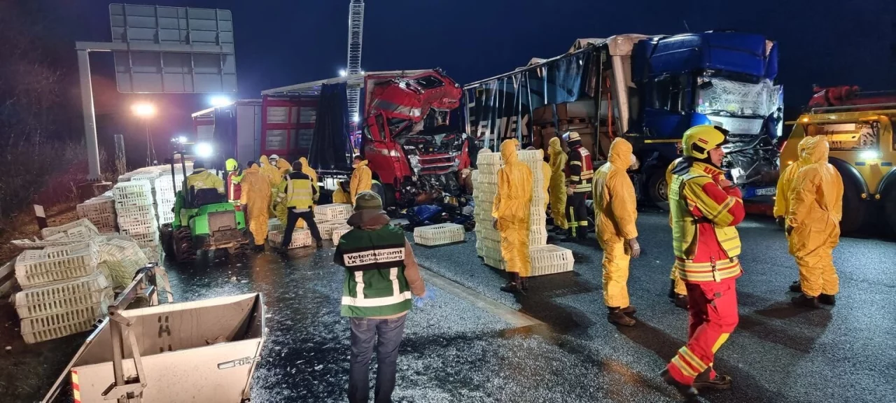 Im Rückstau des Unfalls stießen zwei weitere Lkw mit dem Transporter voller Hühner zusammen. Dabei wurden drei Männer im Alter von 34, 35 und 46 Jahren schwer verletzt. Sie wurden ins Krankenhaus gebracht.